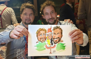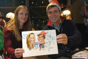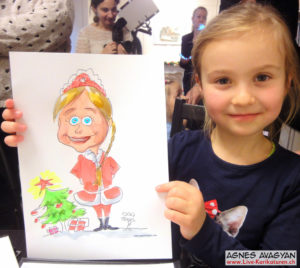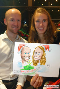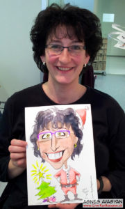 Agnes Karikaturen verfügt über langjährige Erfahrung als Live-Karikaturistin für Weihnachtsessen von Firmen.
